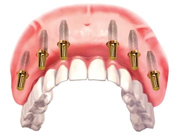 Jest to metoda podobna do techniki All-on-4, z tym, że w tu zamiast 4 wprowadza się 6 implantów. Warunkiem zastosowania tej metody leczenia jest odpowiednia ilość kości zarówno w odcinku przednim jak i bocznym. Na wszczepionych implantach możemy odbudować pełen łuk zębowy składający się z 12-14 zębów.